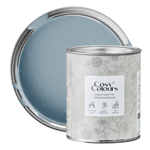 MissPompadour Kreidefarbe für Möbel blau 750ml, Twilight Blue - Holzfarbe, Holzlack matt innen - Möbellack, Möbelfarbe ohne Schleifen - Kreidefarbe für Holz - CosyColours