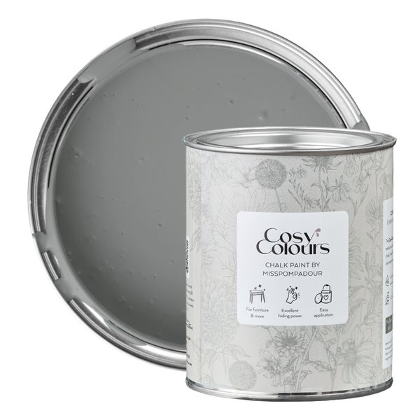 MissPompadour Kreidefarbe für Möbel grau 750ml, Calm Grey - Holzfarbe, Holzlack matt innen - Möbellack, Möbelfarbe ohne Schleifen - Kreidefarbe für Holz - CosyColours