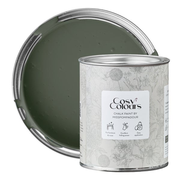 MissPompadour Kreidefarbe für Möbel grün 750ml, Mystic Lake Green - Holzfarbe, Holzlack matt innen - Möbellack, Möbelfarbe ohne Schleifen - Kreidefarbe für Holz - CosyColours