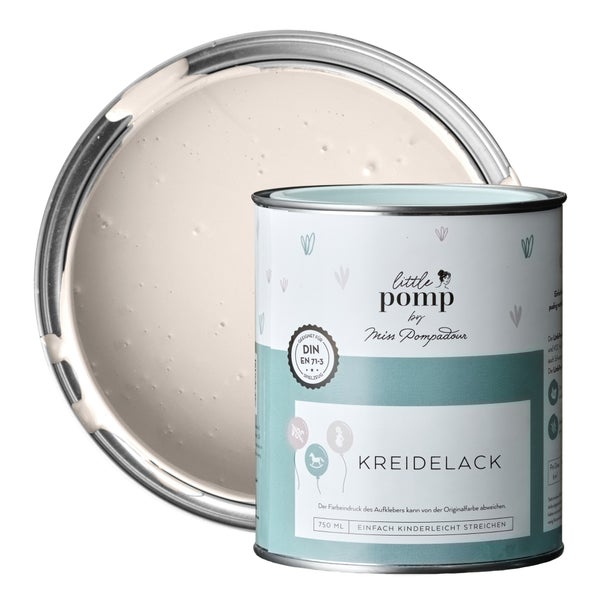 Unsere LittlePomp Kreidelacke machen es Dir leicht, Dein zuhause nach Deinen Wünschen zu gestalten. Die zarten, matten Farben überzeugen durch eine sehr hohe Deckkraft und sind nach wenigen Stunden bereits handtrocken. Dank ihrer cremigen Konsistenz lassen sie sich im Innenbereich ganz einfach, spritz- und tropffrei verarbeiten. Dabei sind sie wasserbasiert, nahezu geruchlos und besonders emissionsarm, ideal geeignet beispielsweise für die liebevolle Gestaltung von Kindermöbeln und Spielzeug. Unsere Kreidefarbe ist spielzeugsicher, speichelfest und tiersicher. Hochwertige Rohstoffe sorgen für gleichmäßige, streifenfreie Anstriche und robuste, abriebfeste Oberflächen auf einer Vielzahl von Untergründen. Perfekt auch um Möbel im Shabby Chic zu gestalten!