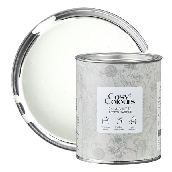 MissPompadour Kreidefarbe für Möbel weiß 750ml, Simply White - Holzfarbe, Holzlack matt innen - Möbellack, Möbelfarbe ohne Schleifen - Kreidefarbe für Holz - CosyColours