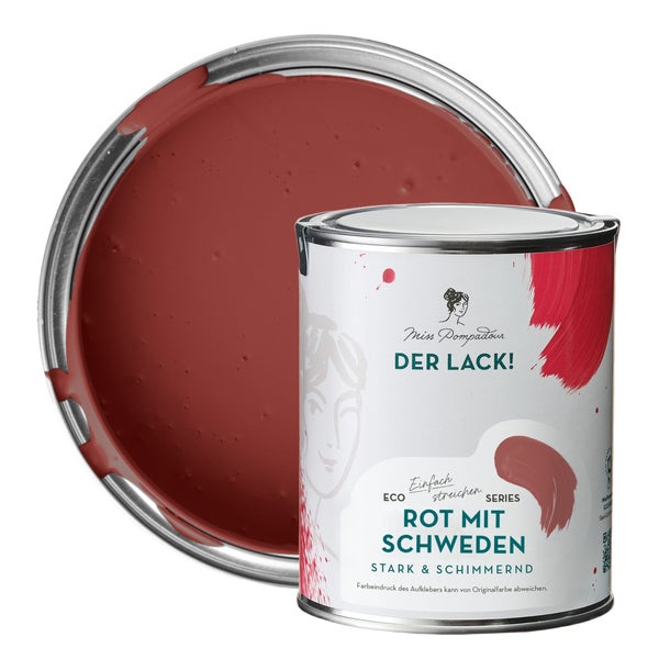MissPompadour seidenmatte Holzfarbe - Rot mit Schweden - 1 L, Möbelfarbe ohne Schleifen - Farbe für Holz, Metall, Kunststoff - Holzlack, Möbellack schnelltrocknend mit hoher Deckkraft