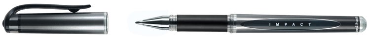 Gelroller uni-ball® SIGNO UM-153 mit Kappe. Mit wasserfester und dokumentenechter Pigmenttinte. Auf dunklen Flächen sichtbar. Schaft aus Kunststoff mit gummierter ergonomischer Griffzone. Clip aus Kunststoff. Strichstärke: 0,6 mm. Schreibfarbe schwarz.