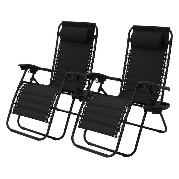 ML-Design 2er Set Sonnenliege klappbar, Schwarz, Liegestuhl mit verstellbarem Kopfpolster & Rückenlehne, Gartenliege mit Schnürsystem, Zero Gravity Outdoor Relaxliege, Gartenstuhl mit Getränkehalter