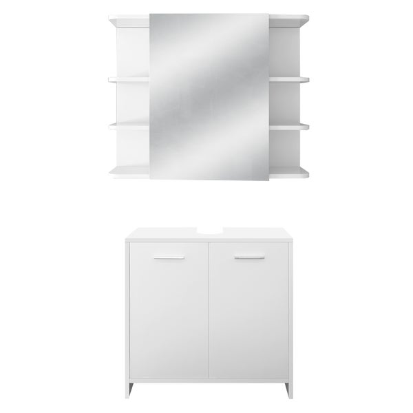 ML-Design Badmöbel-Set 2-teilig, Badezimmermöbel Set Badezimmerset Badmöbel Set, Waschtisch mit Unterschrank Spiegelschrank Hängeschrank Badezimmerschrank Badschrank, Stil Modern, Weiß, Holz, Stauraum