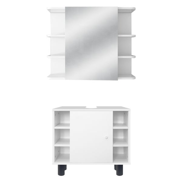 ML-Design Badmöbel-Set 2-teilig, Badezimmermöbel Set Badmöbel Set Badezimmerset, Waschtisch mit Unterschrank, Spiegelschrank, Badezimmerschrank Badschrank, im Modernen Stil, Weiß, Holz, viel Stauraum