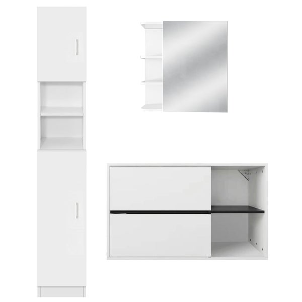 ML-Design Badmöbel-Set 3-teilig Badezimmermöbel Set Badmöbel Komplettset Spiegelschrank Waschtisch mit Unterschrank Hochschrank Badezimmerschrank Badschrank, modernen Stil, Weiß, Holz, viel Stauraum