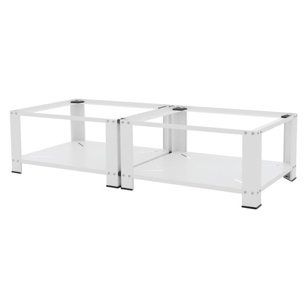ML-Design Doppel Waschmaschinen Untergestell mit 2 Ablagen, Weiß, 128x54 cm, Stahl, 2x 150kg, Stabiler Waschmaschinensockel 2-Fach, 32cm hohes Podest, Erhöhung Unterbau Doppeluntergestell Doppelpodest