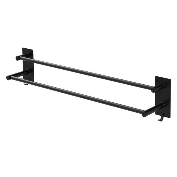 ML-Design Handtuchhalter ohne Bohren 59 cm mit 2 Handtuchstangen, 2 Haken, Schwarz, Stahl, Wandmontage, Badetuchhalter Doppelt zum kleben für Bad&Küche, Modern Wandhalter selbstklebend für Handtücher