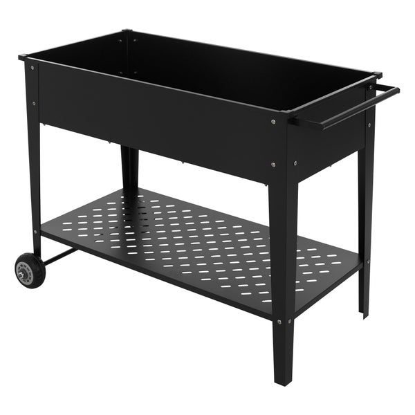 ML-Design Metall Hochbeet fahrbar, 98x50x79,5 cm, Schwarz, Mobiler Pflanzkasten mit Ablage, Rädern & Griff, Pflanzbeet für Garten & Balkon, Gartenbeet Gemüsebeet Kräuterbeet Blumenkasten Pflanzkübel