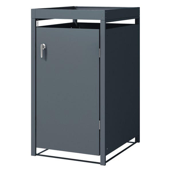Diese Mülltonnenbox besteht aus Stahlblech und einem Rahmen, wodurch sie äußerst robust und rostfrei ist. Zudem erhält die Mülltonnenbox eine Pulverbeschichtung mit Struktur im Farbton Anthrazit-grau. Die hochwertige Pulverbeschichtung verleiht der Mülltonnenbox nicht nur Ihren edlen Look, sondern auch eine sehr wertige Haptik. Zudem ist die Pulverbeschichtung kratzunempfindlich.
