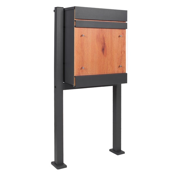 ML-Design Paketbriefkasten mit Ständer, 44x35x58cm Anthrazit-Holzoptik verzinkter Stahl, Paketbox mit Schloss, Paketkasten mit Rückholsperre, Postkasten Halterung Briefkasten mit Standfuß 120,5x56,5cm