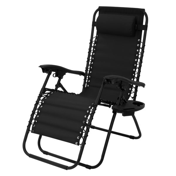 ML-Design Sonnenliege klappbar Schwarz, Liegestuhl mit verstellbarem Kopfpolster & Rückenlehne, Gartenliege wetterfest mit Schnürsystem, Zero Gravity Outdoor Relaxliege, Gartenstuhl mit Getränkehalter