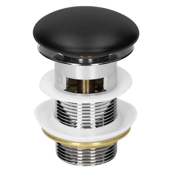- BeschreibungProduktbeschreibung:Das Ablaufventil von LuxeBath kannst du mit nur einem Fingerdruck auf die Abdeckung öffnen und schließen. Diese sogenannte Push-Open-Technologie ist entwickelt worden um das Waschbecken möglich schnell und einfach verdichten zu können.Die Ablaufgarnitur lässt sich ganz einfach in jedes Waschbecken einsetzen und ist sofort einsatzbereit. Die Einheitsgröße sorgt dafür, dass du die Ablaufgarnitur ganz einfach mit einem Waschbecken deiner Wahl kombinieren kannst. Waschbecken erhältst du ebenfalls bei uns im Online-Shop. Der Stopfen lässt sich einfach Herausdrehen und macht die Reinigung ganz unkompliziert.Hinweis: Geeignet für Waschbecken mit Überlauf!Eigenschaften:Installation ohne WerkzeugUniversell für fast alle Waschtische geeignetHochwertige Keramik und hochwertiger EdelstahlAblaufgarnitur für Waschbecken mit ÜberlaufPush-Open-Technologie für komfortable BedienungLieferumfang:1x Ablaufgarnitur für Waschbecken mit ÜberlaufTechnische Daten:Farbe: Schwarz, mattGewicht: ca. 0,25 kgMaterial: Keramik, EdelstahlDurchmesser Keramikkopf: ca. 70 mmDurchmesser Ablauf: Standard Einbaumaß 1 1/4 Zoll (41,2 mm) AußengewindeHöhe: ca. 109 mmHinweis: Die schwarze Keramik-Abdeckung kann um einige Millimeter variieren, dies ist eine Besonderheit in der Herstellung der Keramik verursacht durch die Luftfeuchtigkeit und die Ofentemperatur. Dennoch wird sich die variierende Größe weder auf die Funktionalität oder auf die Funktionsweise der Ablaufgarnitur auswirken.