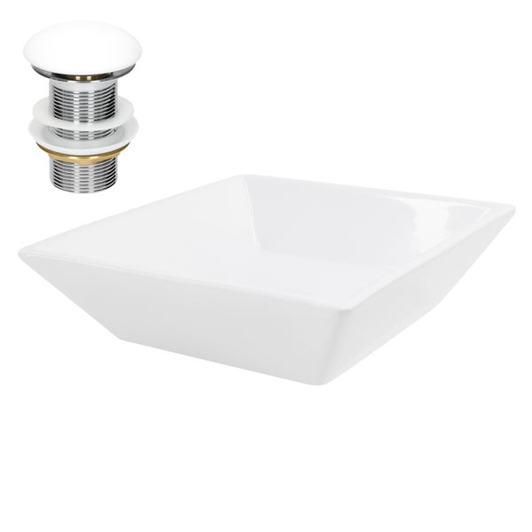 ML-Design Waschbecken aus Keramik in Weiß 41x41x12 cm Eckig inkl. Ablaufgarnitur, Moderne Aufsatzwaschbecken, Design Waschtisch Aufsatz-Waschschale Waschplatz Handwaschbecken, für Badezimmer/Gäste-WC