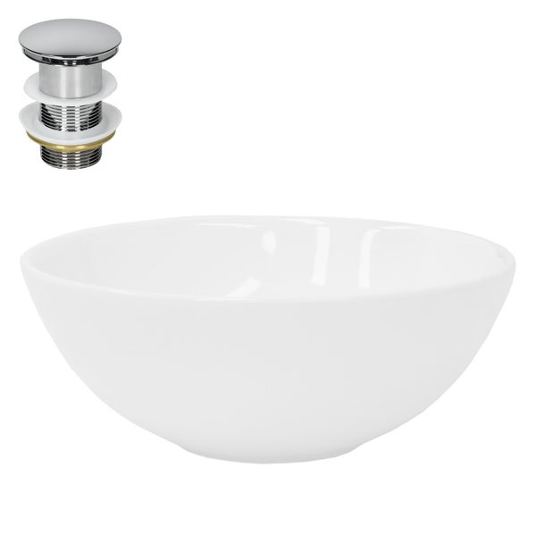 ML-Design Waschbecken aus Keramik in Weiß glänzend Ø 28x11,6 cm inkl. Ablaufgarnitur, Runde Aufsatzwaschbecken ohne Überlauf, Moderne Waschtisch, Waschschale Waschplatz Handwaschbecken, für Badezimmer