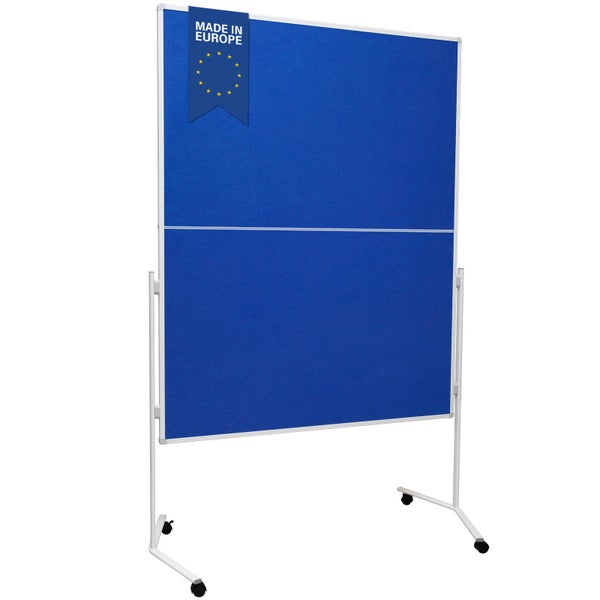 Moderationstafel FOLD - klappbare Metaplanwand mit Filz-Oberfläche - mobil dank Rollen - beidseitig nutzbar - Filz-Moderationswand 120x150 cm - Blau