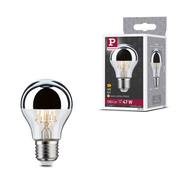 Modern Classic Edition Standard 230V LED Birne Kopfspiegel E27 580lm 4,8W 2700K Kopfspiegel Silber