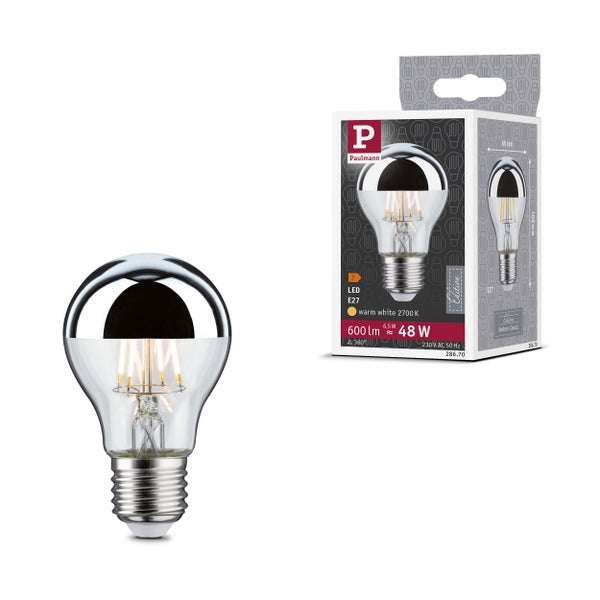Modern Classic Edition Standard 230V LED Birne Kopfspiegel E27 600lm 6,5W 2700K Kopfspiegel Silber