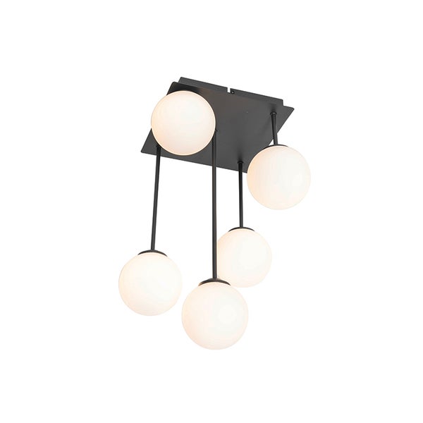 Moderne Deckenleuchte schwarz mit Opalglas 5-flammig - Athens