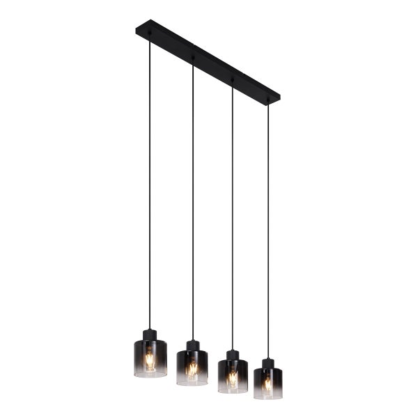 Moderne Pendelleuchte Schwarz mit Rauchglas 4-flammig - Dame