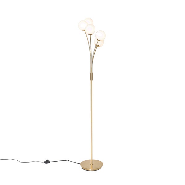 Moderne Stehlampe gold mit Opalglas 5-flammig - Athens