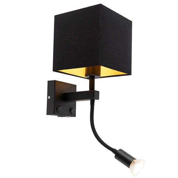 Moderne Wandleuchte schwarz mit USB und quadratischem Schwarzschirm - Zeno