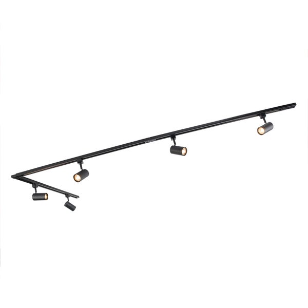 Modernes Schienensystem schwarz mit 5 Strahlern 1-phasig - Jeana
