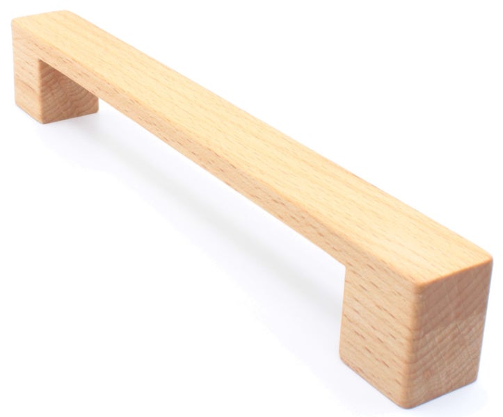 Breiter, eckiger Möbelgriff aus massivem Buchenholz. Die natürliche Schönheit von Buchenholz macht es zu einer beliebten Wahl für hochwertige Möbelstücke. Ein Möbelgriff aus Buchenholz kann Ihrem Schrank einen einzigartigen und ansprechenden Look verleihen.
