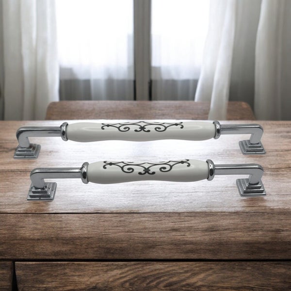 Möbelgriff GR938CRSWPBDD08 Lochabstand 128mm Weiß & Chrom Aluminium & Porzellan