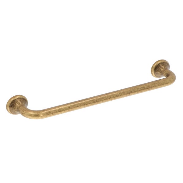Griff Messing Antik gebogen 160mm ist ein stabiler Möbelgriff mit mattiertem Antik-Messing-Finish. Der Griff hat eine runde Form mit gebogenen Enden. Die Rosetten haben eine runde Form. Der Griff besteht aus einer Zinklegierung, was den Griff sehr langlebig und robust macht.