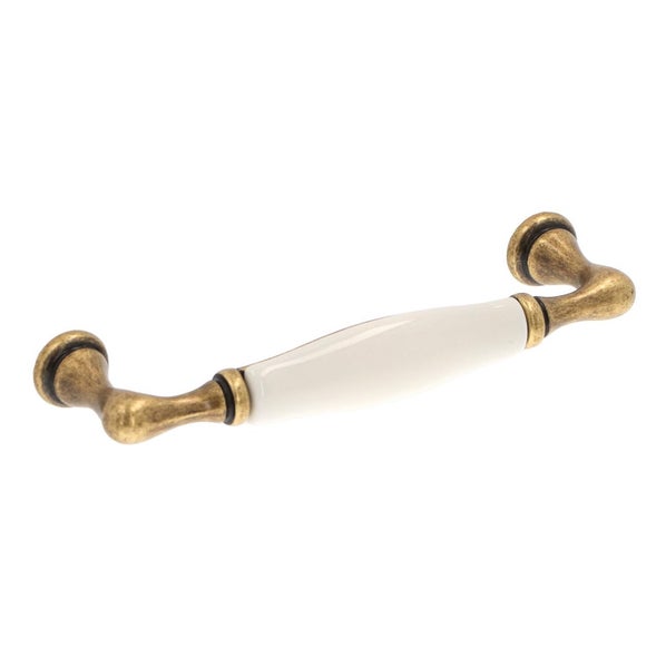 Möbelgriff Romantic Messing antik mit Porzellaneinlage weiß 96mm (5 Stück)