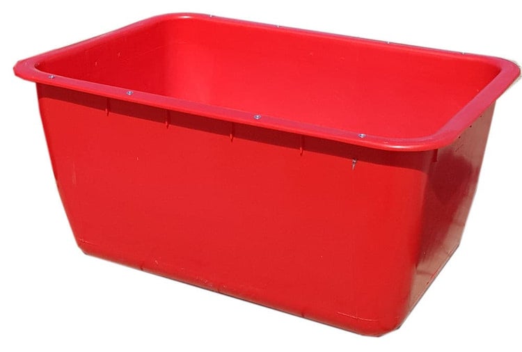 UvV Mörtelkübel 200 Liter (je nach Verfügbarkeit Fehldruck, Fehlfarben) rot, gelb, weiß, grün, orange oder blau. Mörtelwanne, Wasserbehälter, Wildwanne, Futterwanne mit Stahlschiene zur Verstärkung.