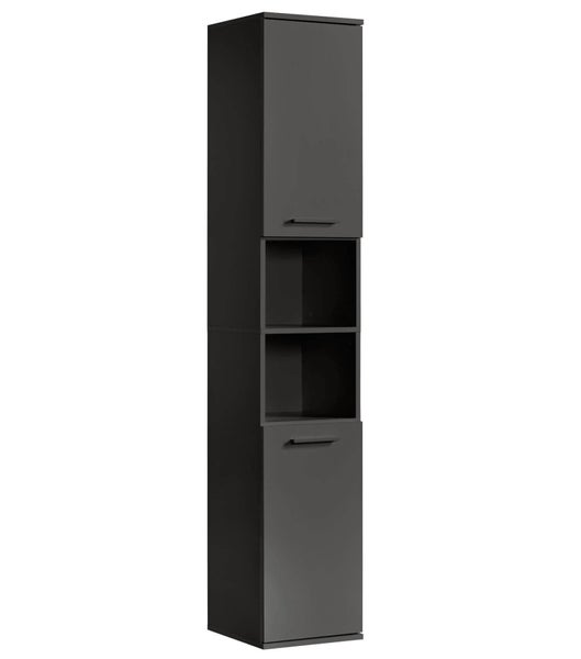 - QUALITÄT MADE IN GERMANY! Der Hochschrank wird aus hochwertigem MDF-Holzwerkstoff oder Spanplatte mit strapazierfähiger Melaminbeschichtung in Weiß Hochglanz oder mattem Anthrazit in NRW produziert. Mit seinem modernen & funktionalen Design schafft er auch bei wenig Platz viel Stauraum.