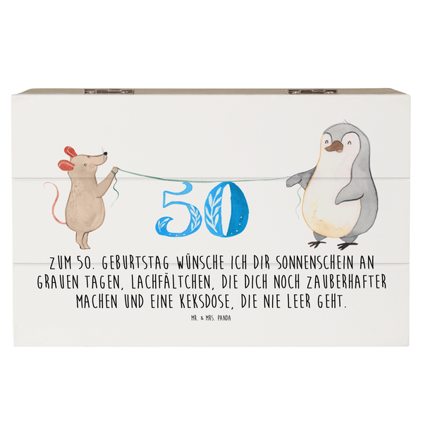 Mr. & Mrs. Panda 19 x 12 cm Holzkiste 50. Geburtstag Maus Pinguin - Weiß