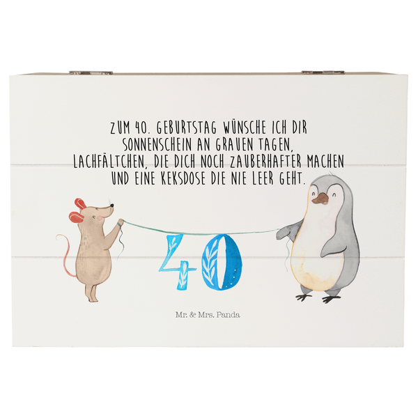 Mr. & Mrs. Panda 22 x 15 cm Holzkiste 40. Geburtstag Maus Pinguin - Weiß