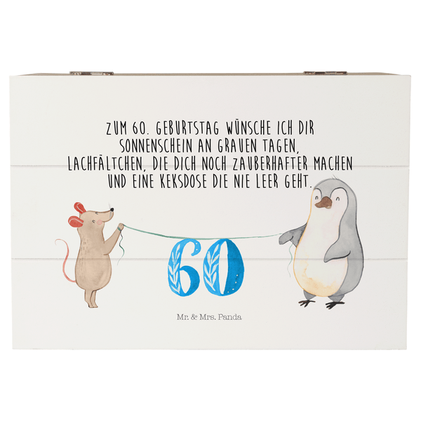 Mr. & Mrs. Panda 22 x 15 cm Holzkiste 60. Geburtstag Maus Pinguin - Weiß
