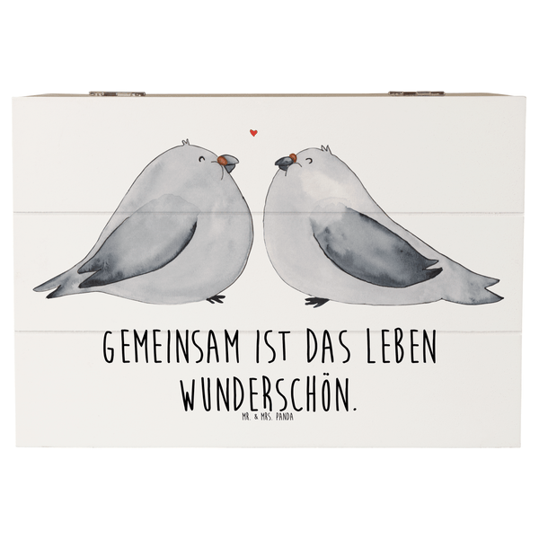 Mr. & Mrs. Panda 22 x 15 cm Holzkiste Tauben Liebe - Weiß