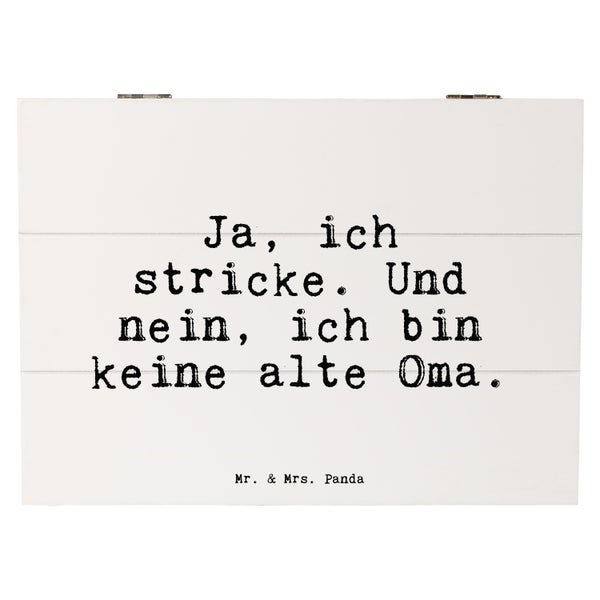 Mr. & Mrs. Panda 25 x 18 cm Holzkiste Ja, ich stricke. Und... - Weiß