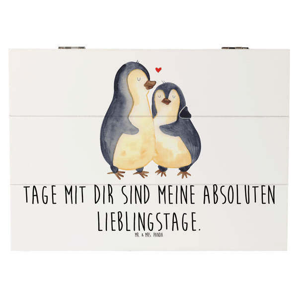 Mr. & Mrs. Panda 25 x 18 cm Holzkiste Pinguin umarmen - Weiß