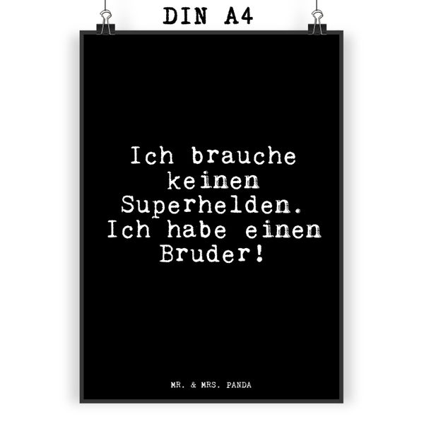 Mr. & Mrs. Panda DIN A4 Poster Ich brauche keinen Superhelden.... - Schwarz