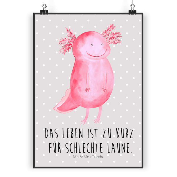 Mr. & Mrs. Panda DIN A5 Poster Axolotl Glücklich - Grau Pastell