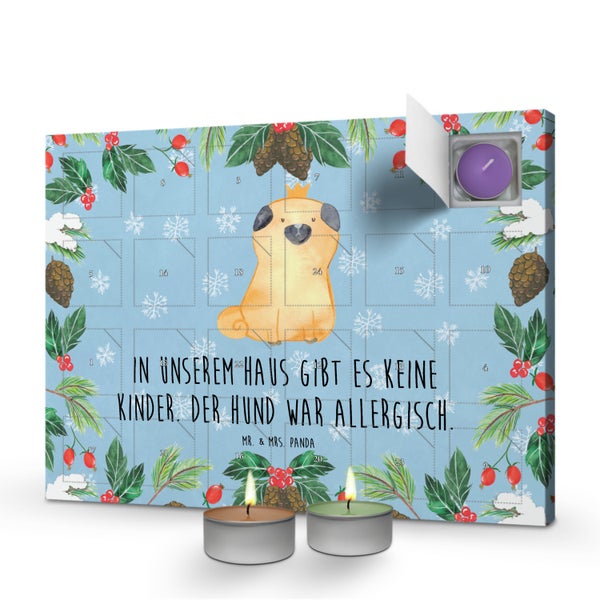 Mr. & Mrs. Panda Duftkerzen Adventskalender Mops Krone - Blau Pastell
