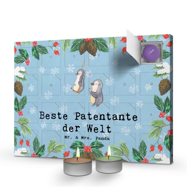 Mr. & Mrs. Panda Duftkerzen Adventskalender Pinguin Beste Patentante der Welt - Blau Pastell