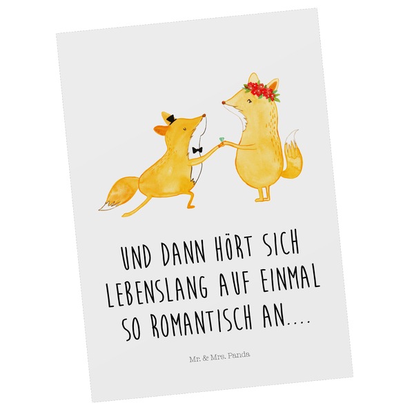 Mr. & Mrs. Panda Postkarte Füchse Hochzeit - Weiß
