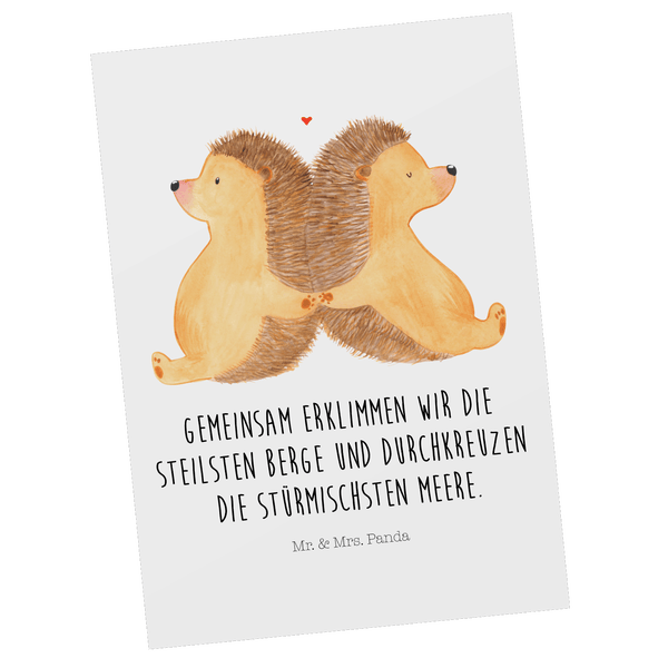 Mr. & Mrs. Panda Postkarte Igel händchenhaltend - Weiß
