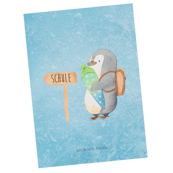 Mr. & Mrs. Panda Postkarte Pinguin Schultüte - Eisblau