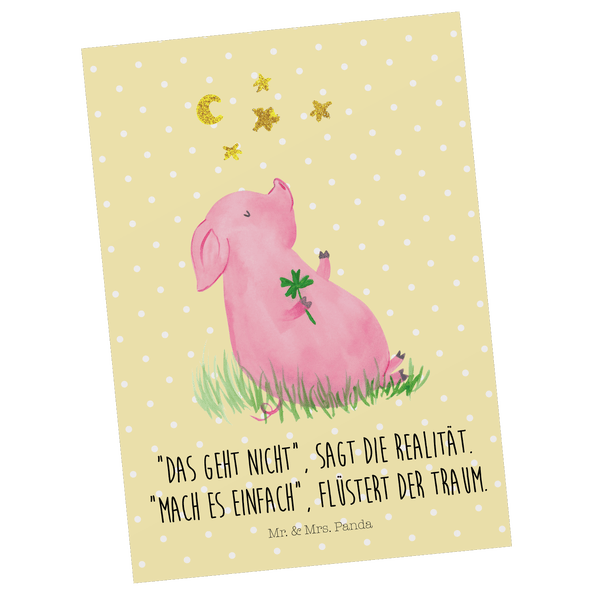 Mr. & Mrs. Panda Postkarte Schwein Glück - Gelb Pastell