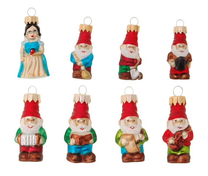 Multicolor 7cm Mini Märchenfiguren, Schneewittchen und die 7 Zwerge, Glasornamente, mundgeblasen und handdekoriert, 8 Stck., Weihnachtsbaumkugeln, Christbaumschmuck, Weihnachtsbaumanhänger