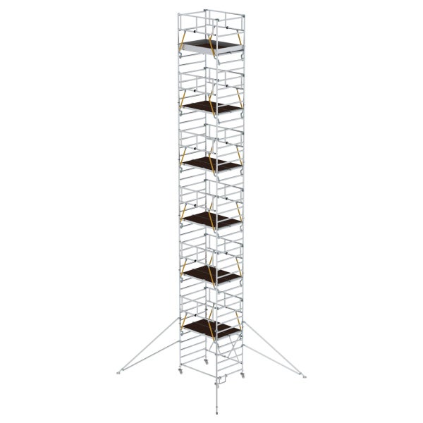 Klappgerüst mit Sicherheitsgeländer und Auslegern von der Munk Günzburger Steigtechnik. Rollgerüst aus stabilem Aluminium-Rundrohr mit geschweißten Rahmenteilen Dank vorlaufenden Geländern rundum gesichert, von Ebene zu Ebene auf- und abbaubar Alle Gerüstteile sind auch einzeln als Ersatz- oder Erweiterungsteile erhältlich Klapprahmen aus Rechteckrohr-Holmen mit selbstarretierenden Scharnieren Stabil und flexibel durch klappbare Ausleger Platzsparend bei Transport und Lagerung Vier Lenkrollen Ø 125 mm mit zentrischer Lasteinleitung, Feststellern und Spindeln ?Trittsichere Plattform für festen Stand Aluminium Bordbretter und Geländerrahmen mit integrierter Knieleiste zur Absturzsicherung (ab Plattformhöhe 2,8 m) Einfacher Auf- und Abbau ohne Werkzeug Technik in der Übersicht Unterschiedliche Plattformbreiten erhältlich (0,75/1,35 m) Plattformlängen 2,45 m und 3,0 m auf Anfrage Arbeitshöhen bis 13,88 m Entspricht DIN EN 1004 Lastklasse/Gerüstgruppe 2: 1,5 kN/m² Hinweis:Die erforderliche Anzahl an Balastgewichten hängt von der Aufbauart, dem Aufbauort und der Gerüsthöhe abDie Aufbau- und Gebrauchsanleitung gibt Ihnen dazu ausführliche Informationen *=Ausleger nicht im Standardumfang enthalten bei Art.-Nr. 115114, 115201, 115124, 115224, und 115234.